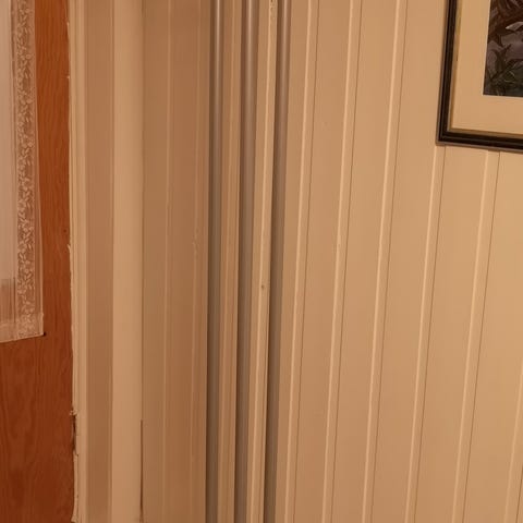 Fin stumtjener i sort stål. Høyde ca. 190.