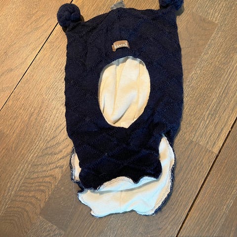Kivat lue str 1 (1-2 år), med vindstoppere på ørene. Reflex vintervotter str 1-2 år. Glidelås helt opp for enklere å ta på vottene.
