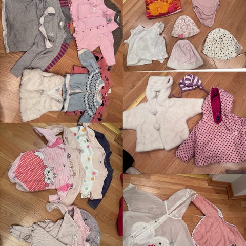 Selger klær i strl 62. Meget pent og lite brukt (1/2 ganger). Har ingen flekker, slitasje eller nupper. Klærne kan kjøpes samlet eller enkeltvis. Pris per plagg er kr. 85. Kan hentes ved Gunerius i Oslo sentrum eller sendes mot kjøper betaler for frakt. Tidspunkt for henting må avtales på forhånd.