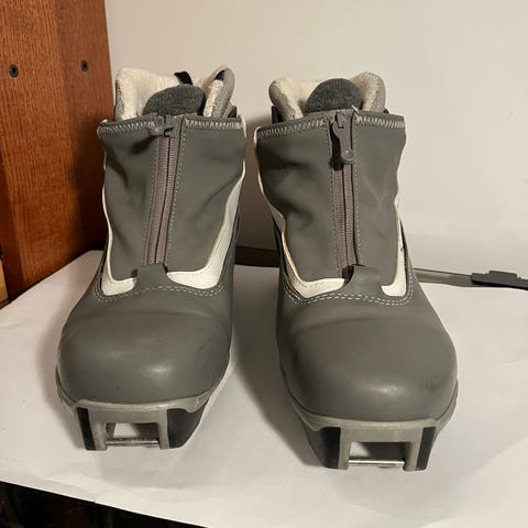 Alpina kombisko i str 34. Modell R Combi junior skisko. De er hele og pene, men limen til borrelåsen har gått opp, så denne må limes på ny.
