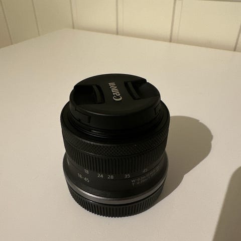 Selger en liten brukt prortrettobjektiv til Canon R-serie kameraer.