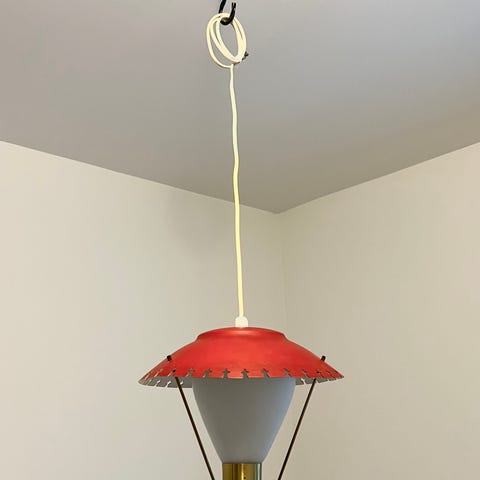 taklampe, taklampe pendel, pendellampe, pendel, lampe, belysning, takbelysning, kjøkkenlampe, kjøkkenpendel, spisebordslampe, spisebord pendel, stuelampe, lampeskjerm, metallampe, metallskjerm, hvit lampe, hvit taklampe, stor lampe, stor pendel, stor taklampe, Ø48, 48 cm, retro lampe, vintage lampe, 70-talls, 80-talls, 90-talls, skandinavisk design, nordisk design, klassisk design, minimalistisk, tidløs, enkel stil, interiør, interiørlampe, boligstyling, styling, funksjonell, industriell, industrilampe, loft, kjøkkenøy lampe, over bord, over spisebord, over kjøkkenbord, pendel over bord, E27, max 100W, varmebestandig ledning, 170 grader, oppussing, hyttelampe, hytte, leilighet, hjem, bruktkupp, Louis Poulsen, PH (Poul Henningsen), Fog & Mørup, Jo Hammerborg, Nordisk Solar, Lyskaer Belysning, Le Klint, Belid, Ifö Electric, Glamox, SG Armaturen, Herstal, IKEA, Eglo