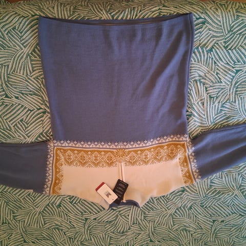 Hjemmestrikket genser med Vardemønster. Herremodell str M.