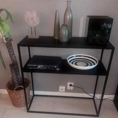 Konsollbord fra Skeidar. Noen synlige bruksmerker. https://www.skeidar.no/alle-produkter/alle-bord/konsollbord/straight-konsollbord/?VariationId=V_5637208326&gad_source=1&gad_campaignid=20506325269&gclid=EAIaIQobChMIvq30nLuOkgMVzUGRBR2R-CEQEAQYASABEgJlPPD_BwE