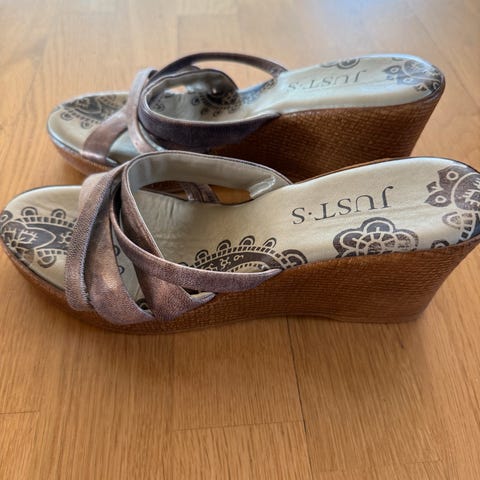 Knall oransje, skikkelig lekre med åpen tå, for den som liker seg i høyden, metallisk detaljer hæl, brukt under men fortsatt veldig flotte