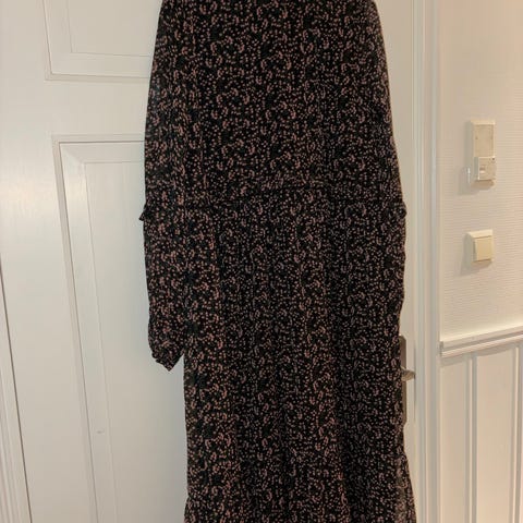 Floyd festkjole i størrelse XL, fargen svart. Kjolen har et mønster av små, glinsende detaljer som gir et dekorativt uttrykk. Ermene er puffermer som gir volum og form. Passer til kvinner.