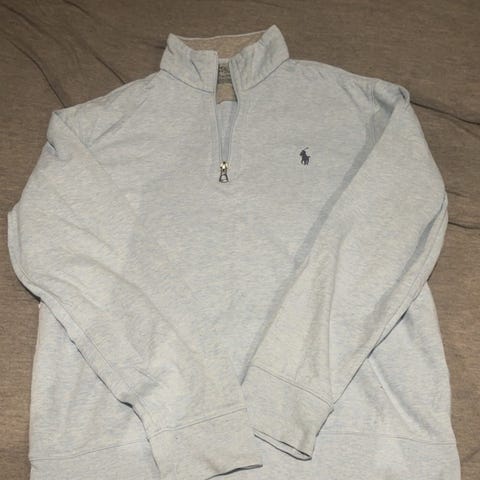 Polo ralph lauren half zip grå, passer m men kan passe en liten L og, ingen bruksmerker, selger fordi den er for stor.