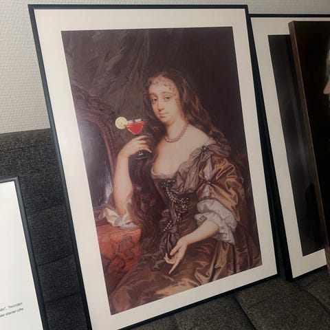 Gold Couture I er et moderne rundt bilde med kunstprint i gull- og blåtoner. De nydelige blomstene rammer pent inn motivet som har gyldent trykk. Dette bildet vil fort bli et blikkfang i rommet.