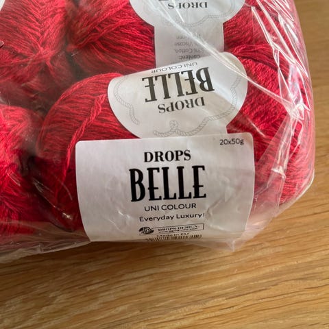 35 nøster Drops Belle i fargen 12 kirsebær🍒 Opprinnelig kjøpt til å strikke Lola Kjole fra Sandnes Garn - oppskrift ligger gratis på nettsiden til Sandnes. Nypris 1085kr. Hentes hos meg eller sendes mot at kjøper betaler frakt😊