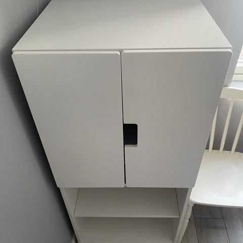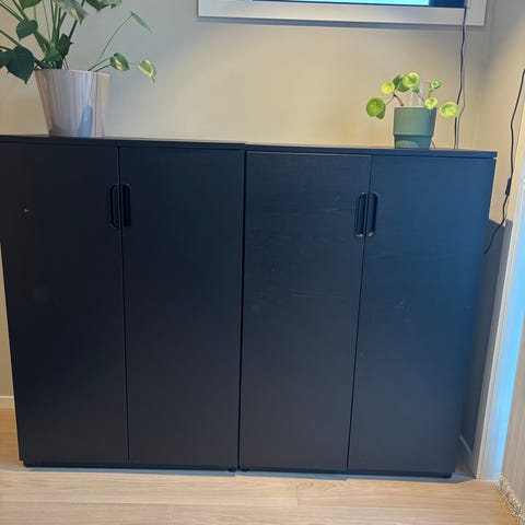 Selger to skap som til sammen måler ca 2 meter i bredden. Det selges helst samlet men er åpen for bud på en og en.