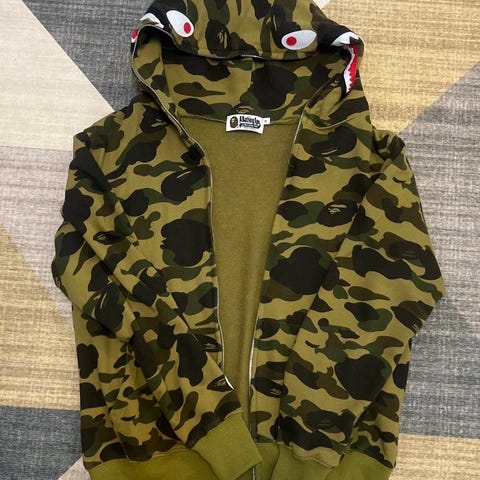 Selger denne godt men pent brukte Bape (a bathing ape) hettejakken med camo hette i str M. Kjøpt for rundt 6000,- og selges for 2000,- (pris kan diskuteres) Kan møtes/hentes eller sendes(: