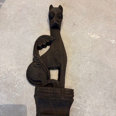 Stort og tungt veggpanel i massivt tre, håndskåret i dypt relieff.