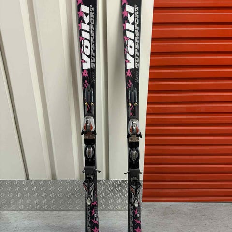 Völkl Mantra jr alpinski med integrerte bindinger, 148 cm lange.