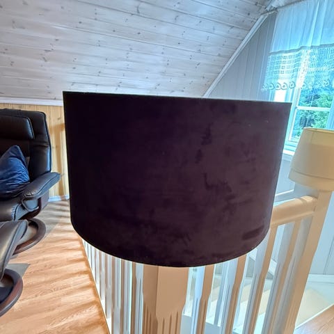 Lampeskjerm i grå, velour ca 35cm diameter og 40 høyde