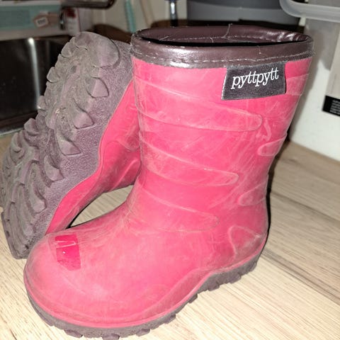 Fine foret støvler til en meget billig penge. Godt brukt i barnehagen men like hele. Supre til varme vinterdager med ullsokk, tidlig vår og høst