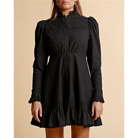 Kjolen er utrolig fin med sin blomstrete gule detaljer, og i tillegg til behagelig og myk og ha på. Perfekt til vår og sommer, eller eventuelt ut på byen. Den er et lekkert mønster bak ryggen som ligner på en vest, noe som fremhever puff armene. I tillegg så vil ryggen se mye smalere og finere ut. Det er fult mulig å knappe helt opp, men ser også elegant ut med halvveis åpent fremme.
