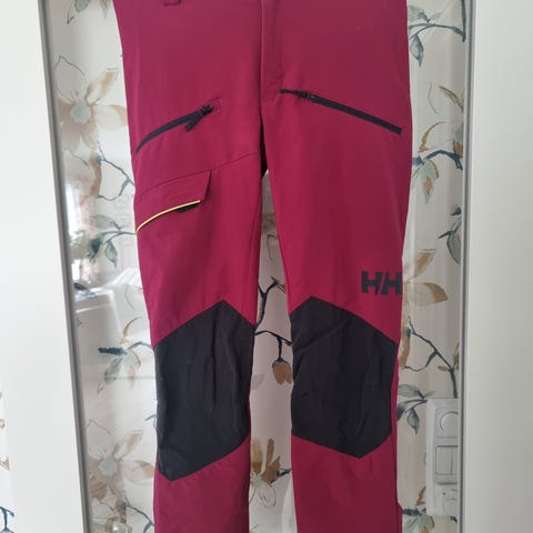 Helly Hansen barn bukse i størrelse 164, grå farge, laget av polyamid. Unisex modell som passer begge kjønn. Designet for utendørs bruk med slitesterkt materiale. Strikk med feste til sko i bena for å hindre at snø kommer på innsiden. Skade bak som er fikset med lapp.