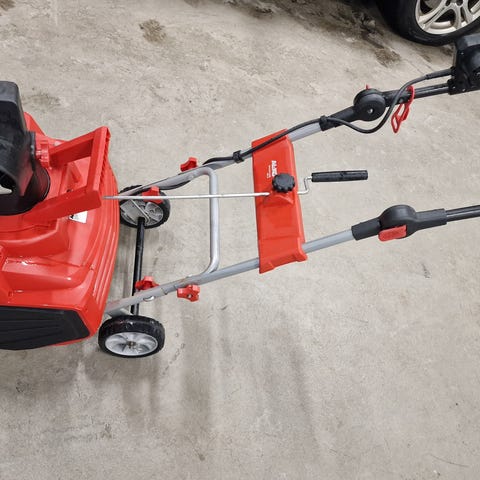 Meec Tools elektrisk snøfreser på 2000W, 230V med benevnelse 4600 mm. Kastelengde inntil 6m. Veier bare 15 kilo og har praktisk håndtak for å bære mellom innkjørsel, gangsti og terrasse. Egnet for effektiv snørydding på mindre til mellomstore områder. Bilder fra jula.no