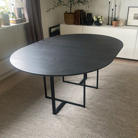 Spisebordet Seed har et unikt design. Konstruksjonen i heltre furu er solid og holdbar, og den myke svarte fargen gir et elegant uttrykk. Det stilrene designet passer harmonisk inn både i moderne og klassiske interiørstiler. Bordet egner seg like godt til familiemiddager som til selskaper med gjester, og blir et vakkert blikkfang i rommet.