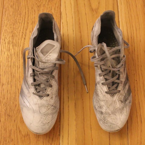 Skoene er kun brukt 2 ganger og fremstår derfor som nesten nye. De har ingen skader, rifter eller merkbar slitasje, og både overdel og såle er i svært god stand. Dette er Adidas Predator kunstgressko (TF), kjent for god passform, komfort og kontroll på kunstgress.