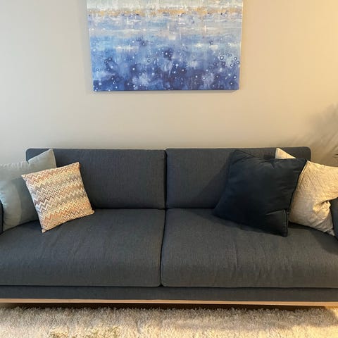 Sofaen ble kjøpt i 2017, men fremstår i svært god stand. Putene er i skum-skum og holder fasongen meget godt. Sofaen er veldig god å sitte i, og god å sove på med sin romslige setedybde og gode lengde.