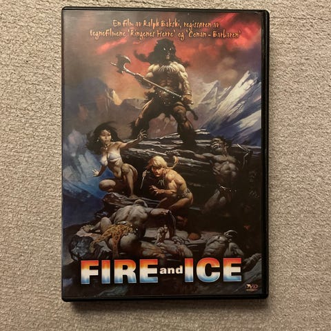 Selger Fire and Ice fra 1983 tegnefilm/animasjon på sone 2 DVD med norsk tekst. Dette er en SME utgivelse og en tidligere leiefilm på Videokjelleren i Grimstad. Sjelden liten sak med norsk tekst. Den som selges for kr 399 på Platekompaniet er sone 1 uten tekst. Nokså pent brukt.