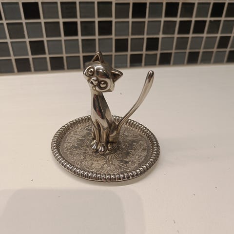 Selger mitt smykke med parfyme flakong i glass formet som ett hjerte. Denne er kjøpt på Etsy med lukt av "Blood Cedar". Flakongen kan åpnes og brukes. Parfymen er ikke brukt. Den ble kjøpt i 2015 og er veldig pent og lite brukt.