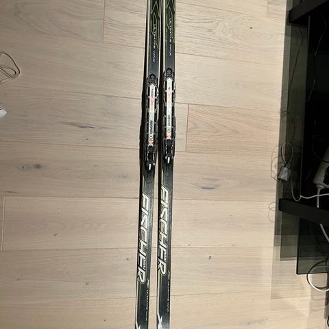 Fischer XTR Ultimate wax langrennsski med lengde på 157 cm. Skiene har bindinger av typen Rottefella JR Race, classic.