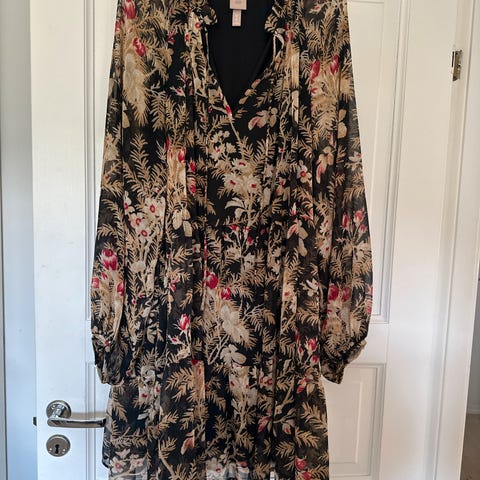 Super fin kjole selges videre da den ikke blir brukt, den er for fin til å bare henge der 😅 Fargen er mer grå/grønn ish og har nydelig broderi detaljer rundt hele. Den har også en hempe i brystpartiet