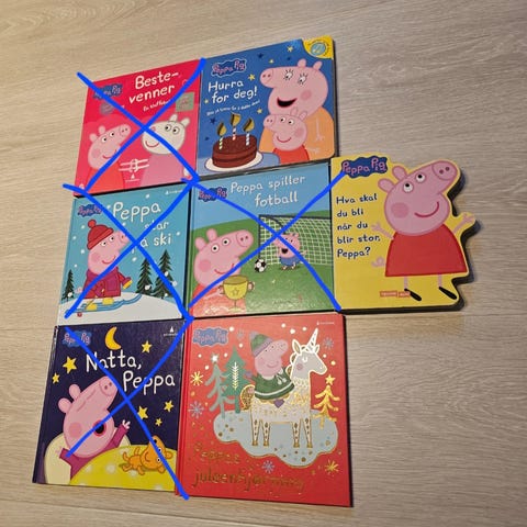 Peppa gris bøker og bok med diverse lys- og lydeffekter selges. Kjøpt nye av oss.