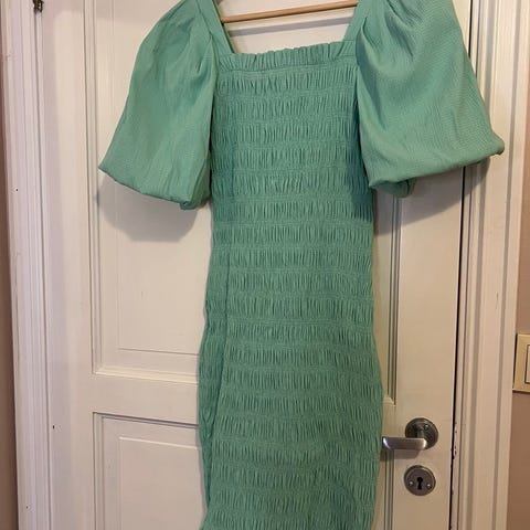 A-View hverdagskjole i størrelse 40 for kvinner. Kjolen er flerfarget med et blomsterinspirert mønster og laget av bomull. Den har puffede ermer og en rett passform.. ved kjapp kjøp kan jg gå litt ned i prid, ps kjøpt I en ekliæusiv damebutikk