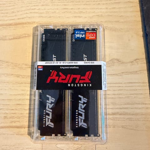 Selger 2x 32GB Kingston FURY Beast DDR5 6000MHz CL30 brikker, da jeg ikke hadde behov for 128GB.