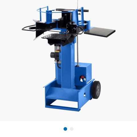 Vedkløyva er brukt ett par ganger bare. Nå står den mest bare å støver ned da jeg ikke har noe mer skog å hugge i. Genial kløyve med hjul som gjør den enkel å flytte.
