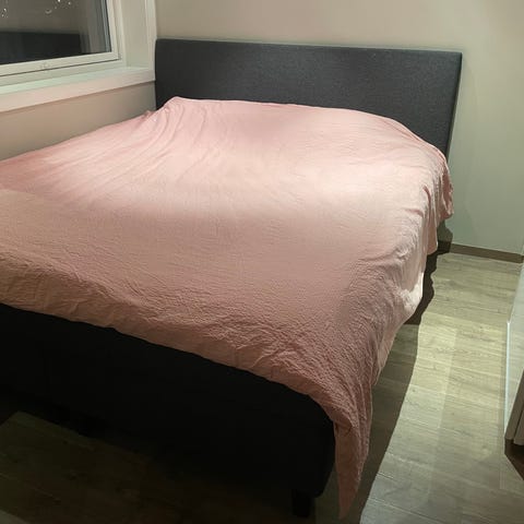Sengegavl kan fås med for 1500 i tillegg. Denne koster 4000 ny og er så godt som ny