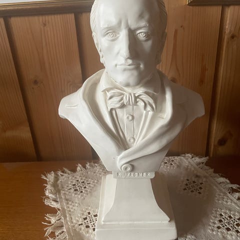 Chopin byste laget i hvit keramikk. Skulpturen viser en detaljert fremstilling av komponisten med signatur på sokkelen. Passer til dekorasjon og samling. 100kr