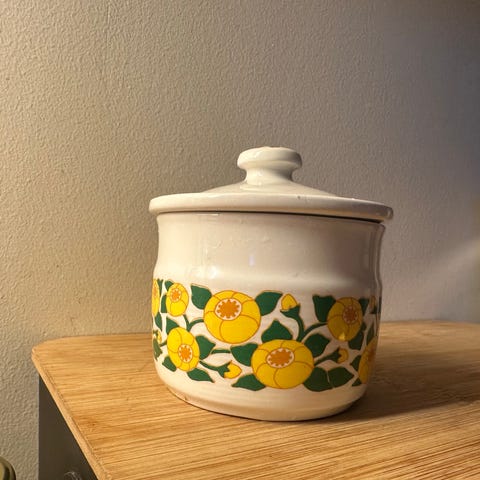 Klassisk norsk 70-talls design med dekorative striper – perfekt kaffeservice.