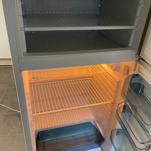 IKEA kombiskap i hvit farge. Kjøleskap og fryser i en enhet. Front plater/skapdører følger ikke med. Men skap dør festene følger med viss du trenger di. Vi vasker kjøleskapet før eventuell henting. Mål- Bredde: Ca. 54–55 cm (for å passe i en 60 cm bred skap viss du vill ha det stående i ett kjøkkenskap.