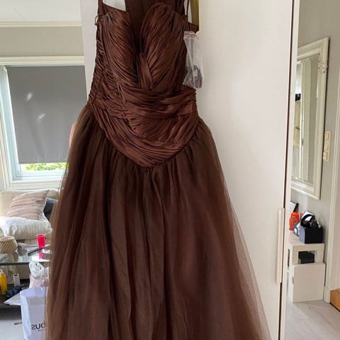 Den er bare blitt brukt en gang😁ingen bruks merker. Kjolen er kjøpt på blikkboks