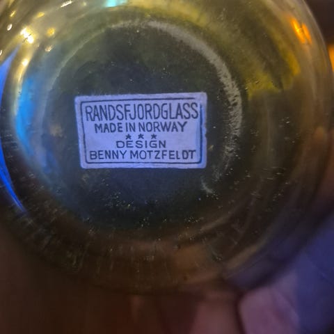 ✅ 1 stk Randsfjordglass – design Benny Motzfeldt (merkelapp)