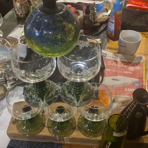 Selger en eksklusiv grønn vintage glass-samling med skikkelig norsk designfølelse og “curated” interiør-look.