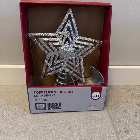 Ubrukt batteridrevet juletrestjerne selges grunnet at den ikke ble brukt i år.