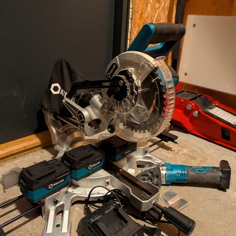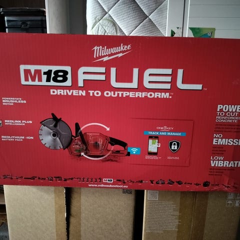 Den største kapp og gjær saga fra milwaukee på batteri. Kun brukt et par ganger. Er sag,stativ og et 8 amh batteri