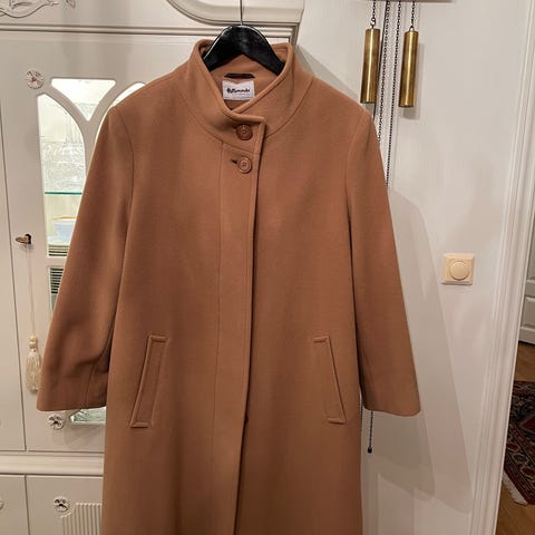 Selger en elegant og tidløs kåpe i vakker camel-farge 🤎 Kåpen er laget av en eksklusiv blanding av kashmir og ull, som gir en myk, varm og behagelig kvalitet. Innvendig er den fôret med et nydelig silkestoff som gir en luksuriøs følelse. Perfekt til både hverdagsbruk og finere anledninger.