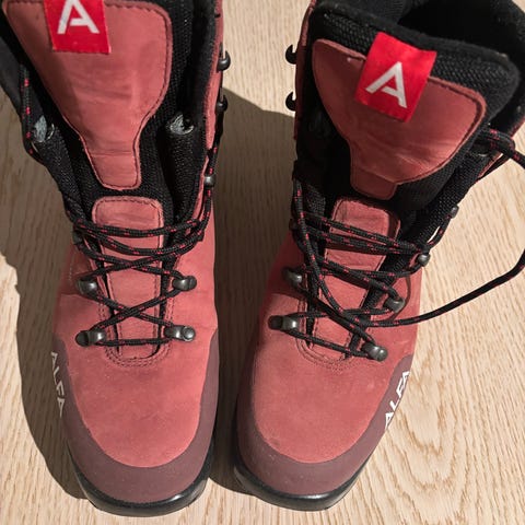 Alfa Skarvet Advance GTX W fjellskisko. Passer til BC binding. Brukt et par ganger på turskøyter. Trenger en størrelse over, ønsker derfor å selge disse.
