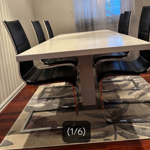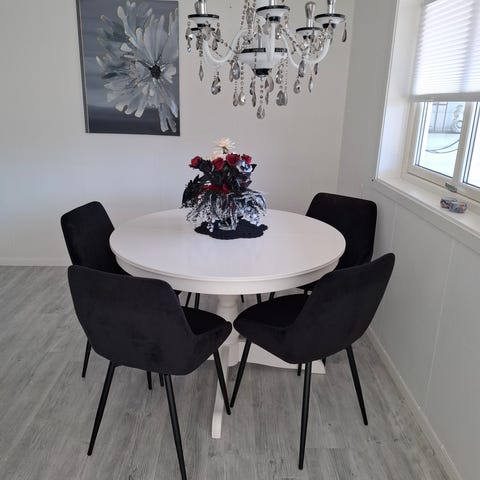 Spisebord med 6 stoler og 2 ileggsplater