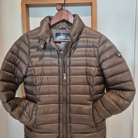 Jean Paul dunjakke i mørkeblå farge, størrelse M for dame. Jakken er laget av dun og egnet som ytterplagg.