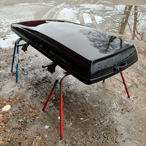 Pent bruk skiboks (Skiguard 850) med skiholdere selges for 1000,-.