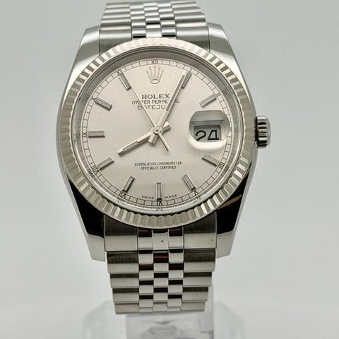 De senere årene har Datejust også blitt produsert i 41 mm, men den klassiske størrelsen på 36mm forblir den mest populære størrelsen på klokkene. Dette uret kommer med originalt garantikort, serviceboks og servicedokumentasjon.