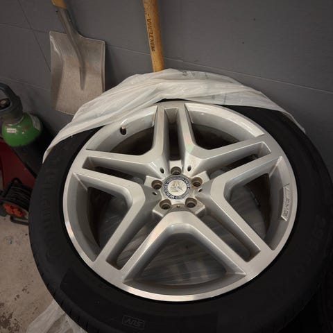 4 stk felger, stått på 190E men passer jo mye annet. 7x16 ET34. Det sitter minimalt brukte 205x50x16 Nankang på to og 185x55x16 Sailun på de andre.
