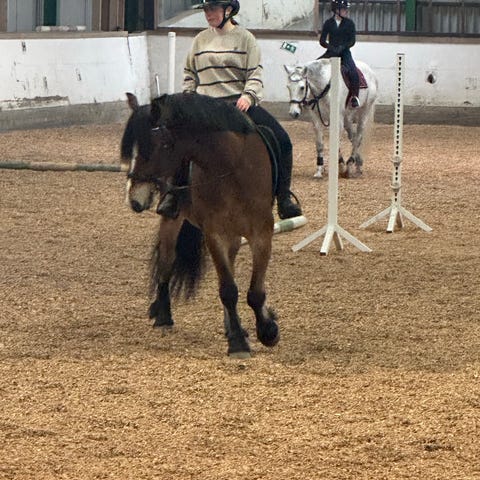 Hesten er under omskolering å vi må ha god tolmodighet å masse kjærlighet til han.